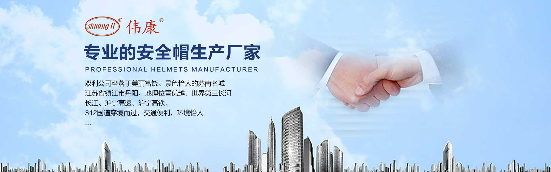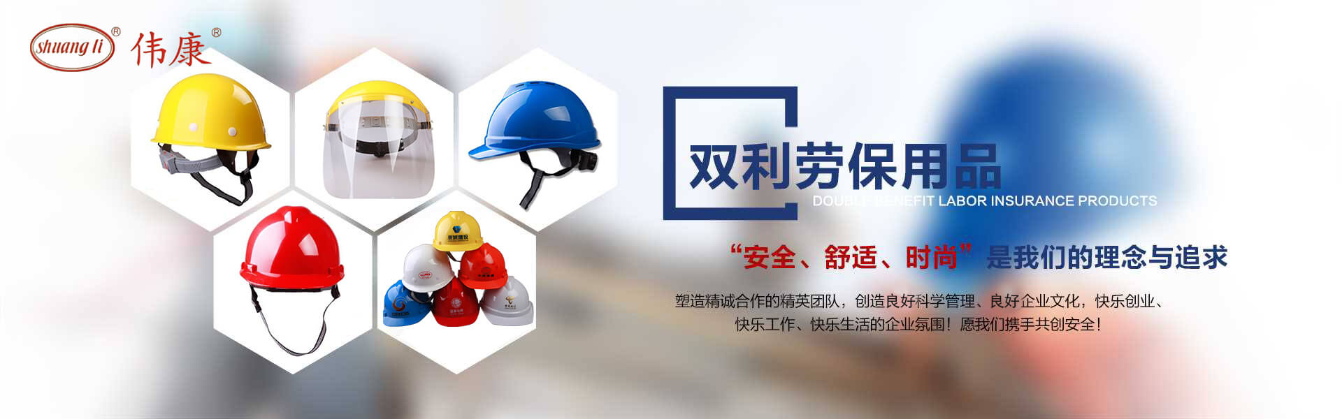 專業(yè)的安全帽生產(chǎn)廠家-鎮(zhèn)江市雙利勞保用品有限公司。雙利公司坐落于美麗富饒、景色怡人的蘇南名城——江蘇省鎮(zhèn)江市丹陽,地理位置優(yōu)越、世界第三長河——長江、滬寧高速、滬寧高鐵、312國道穿境而過,交通便利,環(huán)境怡人。鎮(zhèn)江市雙利勞保用品有限公司是鎮(zhèn)江市第一家創(chuàng)辦的專業(yè)生產(chǎn)安全帽的生產(chǎn)商,并申請(qǐng)擁有自己的品牌:shuangli牌和偉康牌,立足致力于安全帽研究,從原料入手研發(fā)出韌性更強(qiáng)、抗沖力更高的特點(diǎn)。公司根據(jù)實(shí)際運(yùn)行需要建立高效、務(wù)實(shí)、有序的組織機(jī)構(gòu),實(shí)現(xiàn)現(xiàn)代化公司管理。同時(shí)公司具備專業(yè)完善的生產(chǎn)設(shè)備和成熟的安全帽生產(chǎn)工藝及先進(jìn)的檢測(cè)儀器,為產(chǎn)品的質(zhì)量奠定了堅(jiān)實(shí)的基礎(chǔ),各項(xiàng)技術(shù)指標(biāo)均達(dá)到國家《GB2811-2019》《安全帽》標(biāo)準(zhǔn)。產(chǎn)品廣泛適用于建筑、林業(yè)、石油、石化、造船、港口、冶金等行業(yè)。 “安全、舒適、時(shí)尚”是我們的理念與追求,塑造精誠合作的精英團(tuán)隊(duì),創(chuàng)造科學(xué)管理、良好的企業(yè)文化,快樂創(chuàng)業(yè)、快樂工作、快樂生活的企業(yè)氛圍!愿我們攜手共創(chuàng)安全!